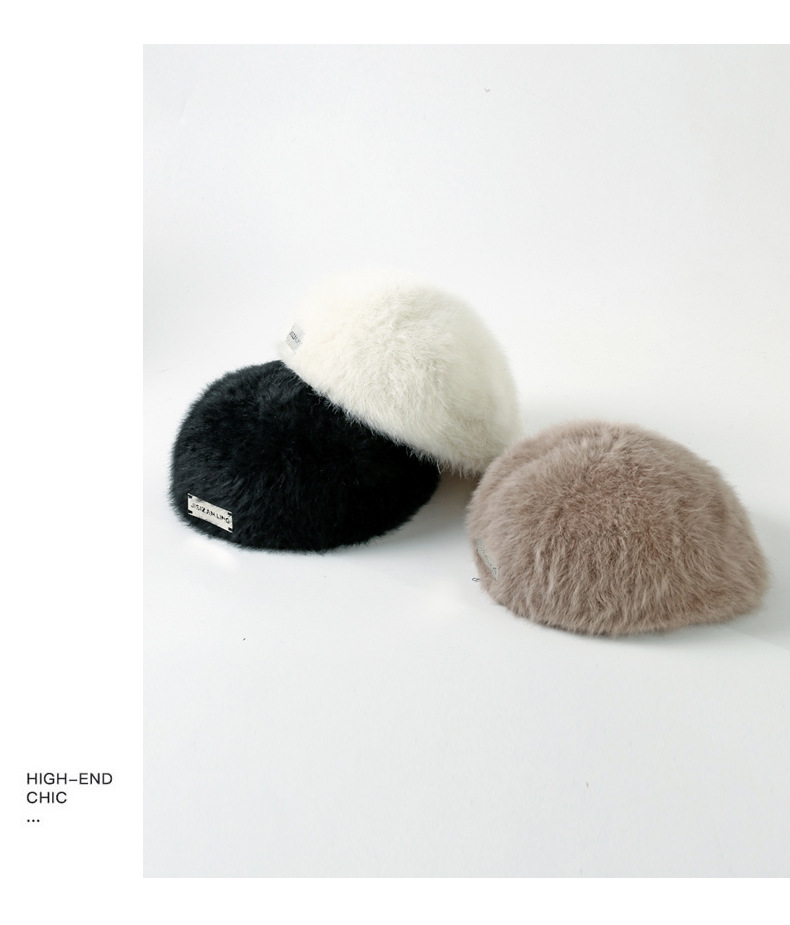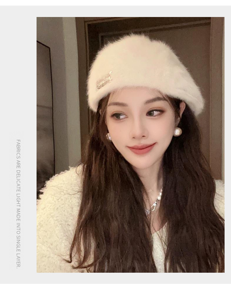 2025韓国語バージョン秋と冬の女性のための新しい帽子模倣ラムベルベットファッショナブルレザーオクタゴンハット冬ウォームコールドダック舌帽子