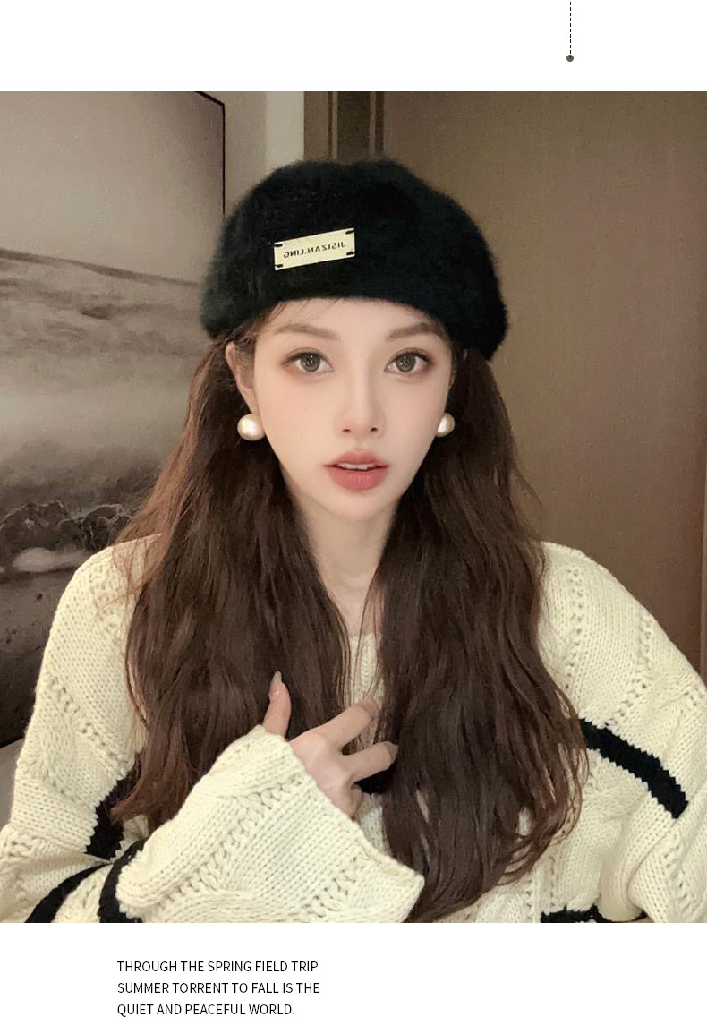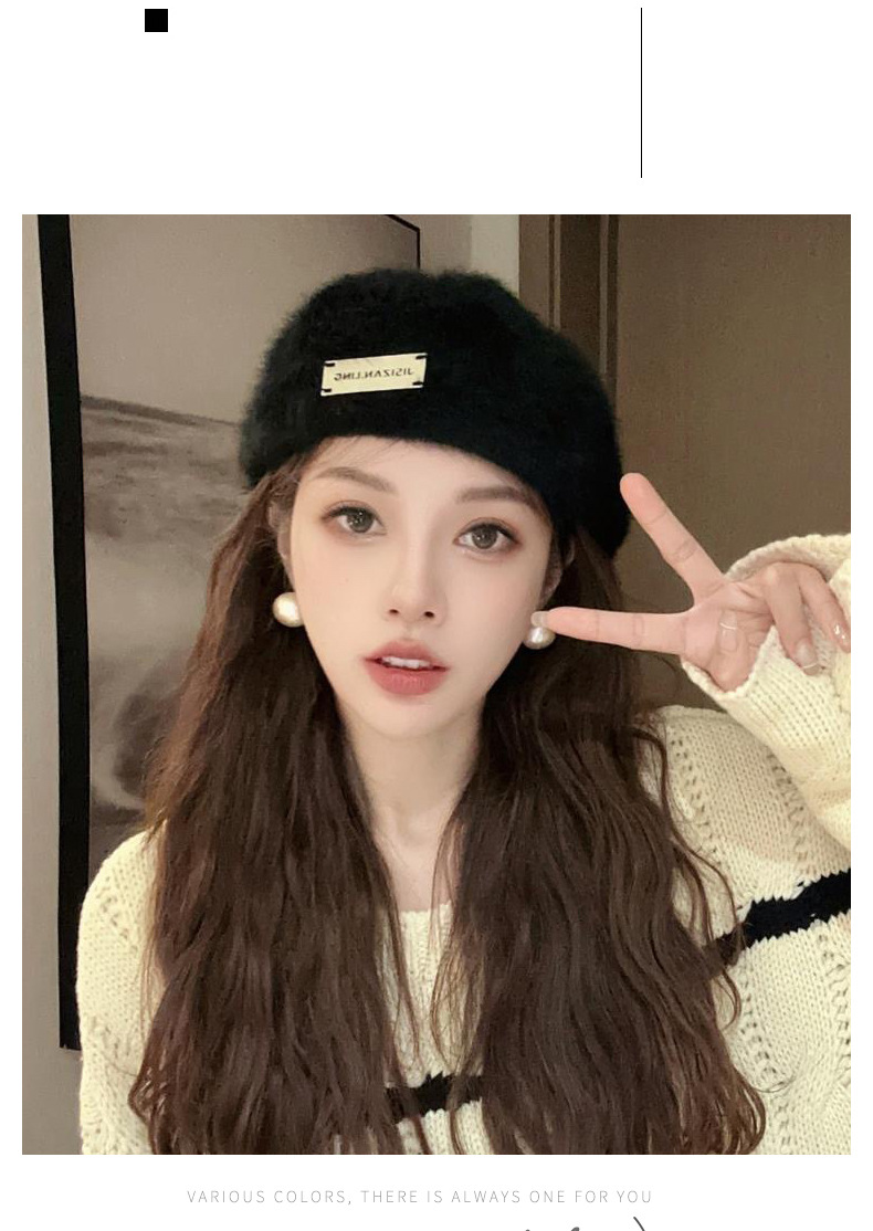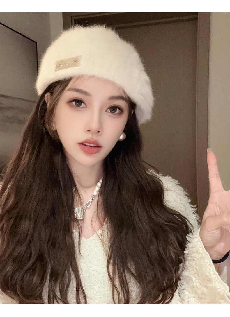 韓国版レディース帽子冬の厚手ニットベレー帽百合保温...