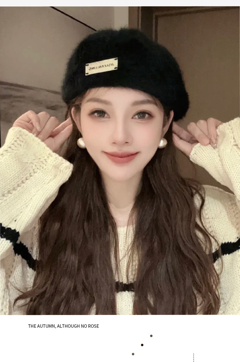秋冬防寒ウールキャップ 女性用新作 ベレー帽 反戴可...